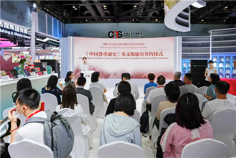 6月18日,湖南人民出版社出版的《中國貨幣通史》英文版輸出簽約儀式在第31屆北京國際圖書博覽會上舉行。這套追溯中國貨幣從起源到中華人民共和國第五套人民幣,跨越3000年歷史,展現中國經濟智慧的系列圖書,不久后,將由施普林格·自然集團旗下國際學術出版社帕爾格雷夫·麥克米倫出版社出版,與國外讀者見面。